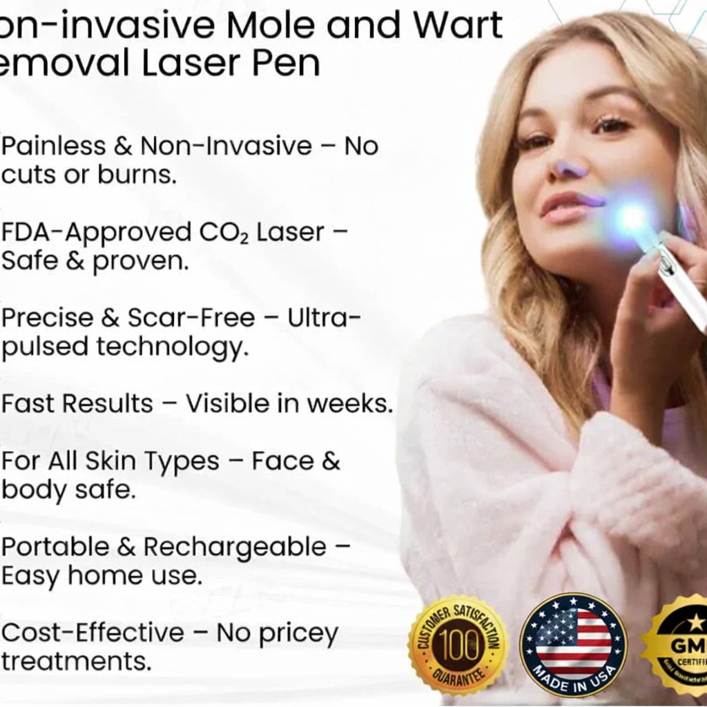 Say goodbye to moles, warts, dark spots, and skin imperfections with the ACEZOZLA™ Non-Invasive Mole and Wart Removal Laser Pen. Designed for effortless at-home use, this compact, lightweight device delivers professional-grade results in minutes. Experience visible skin improvement in just 2 weeks!
